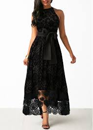 Sleeveless High Low Belted Black Lace Dress Rotita Com Usd 43 56 Belted Lace Dress Lace Dress Long Lace Maxi Dress