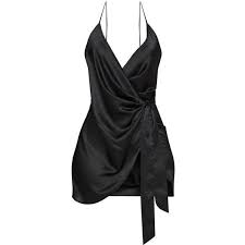 Black Satin Halterneck Wrap Bodycon Dress 44 Liked On Polyvore Featuring Dresses Halter Wrap Dress Bodycon Dress Black Satin Dress Bodycon Cocktail Dress