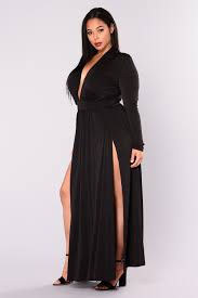 Event dresses call it what you will. Black retro dress ss0286. Our maxi length spree dress in black features a deep v neckline slightly padded shoulders long sleeves and a high double slit to best accentuate your super sexy shape.