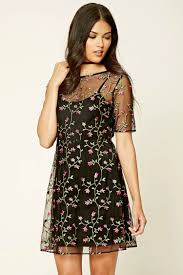 Forever 21 Contemporary A Sheer Mesh Sheath Dress Featuring A Floral Foliage Embroidery An Illusion Neckline Short Sle Floral Mesh Dress Mesh Dress Fashion