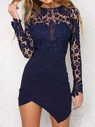 Shop For The Dark Blue Lace Panel Asymmetric Hem Long Sleeve Mini Dress Online Now Choies Com Offer Th Mini Dress Long Sleeve Mini Dress Elegant Party Dresses