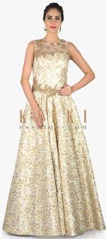 Cream And Gold Brocade Gown Having Zardosi Embroidery Available Only On Kalki Indowestern Gowns Gowns Indian Gowns