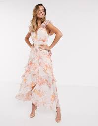 Ever New Ruffle Maxi Dress In Orange Floral Print Asos In 2020 Ruffled Maxi Dress Forever New Dress Dresses