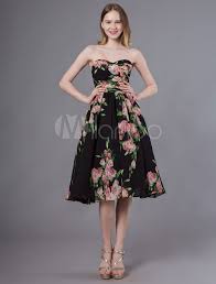 Short Prom Dresses Floral Print Strapless Sweetheart Knee Length Cocktail Party Dress