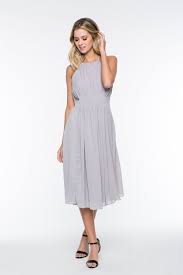 Sleeveless High Neck Pleated Midi Dress Silver Gray Elegant Attire Dresses Pleated Midi Dress