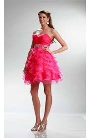 Ball Strapless Short Hot Pink Organza Ruffle Layered Prom Dress Hot Pink Prom Dress Gowns Dresses Cocktail Dress Prom
