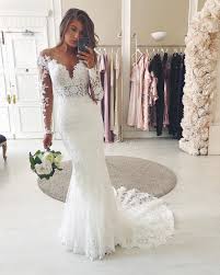 Long Lace Sleeve Wedding Gown With Bare Shoulders By Essense Of Australia Bridal Dresses Lace Bridal Gowns Mermaid Lace Mermaid Wedding Dress