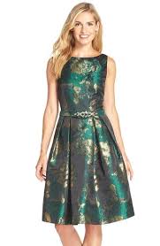 Halston Heritage Metallic Jacquard Fit Brown Cocktail Dresses Fit And Flare Cocktail Dress Fit Flare Dress