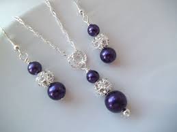 Purple Bridesmaid Jewelry Purple Pearl Necklace Earrings Set Dark Purple Pearls Bridesmaid Earrings Bridesmaid Pearl Earrings Fashion Jewelry Beaded Jewelry