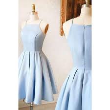 A Line Spaghetti Straps Homecoming Dress Sleeveless Light Blue Stretch 99 Satin Homecoming Dress Light Blue Homecoming Dresses Blue Homecoming Dresses