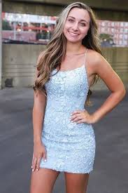 Spaghetti Straps Light Blue Tight Short Sofiedress Homecoming Dresses Short Tight Tight Party Dresses Homecoming Dresses Tight