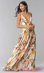 Low V Neck Long Floral Print Wedding Guest Dress Formal Wedding Guest Dress Beach Wedding Guest Dress Wedding Attire Guest