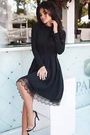 Lace Hemline Detail Black Long Sleeve Skater Dress Blackdress Skaterdresses Cocktail Dress Classy Long Sleeve Skater Dress Black Long Sleeve Skater Dress