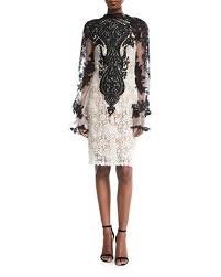 B4533 Naeem Khan High Neck Long Sleeve Knee Length Lace Cocktail Dress Cocktail Dress Lace Designer Cocktail Dress Dresses