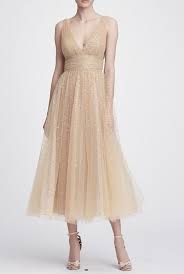 Marchesa Notte Champagne Gold V Neck Glitter Tulle Midi Tea Dress N27g0809 Poshare Cocktail Evening Dresses Dresses Tulle Dress