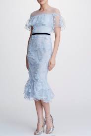 Marchesa Notte Light Blue Embroidered Off Shoulder Midi Dress Poshare Light Blue Cocktail Dress Chic Evening Dress Marchesa Dress