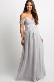 Grey Chiffon Pleated Off Shoulder Maternity Evening Gown Maternity Bridesmaid Dresses Maternity Evening Dress Dresses For Pregnant Women