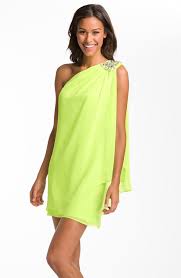 Neon Cocktail Attire Requested For Our Cca Gala Later This Month Done And Love Embellished One Shoulder Draped Cocktail Dress Attire Dresses Chiffon Dress