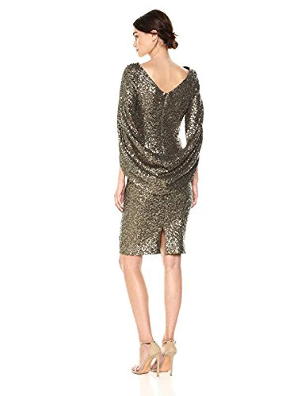 Nicole Miller Satin Sequin Drape Back Cocktail Dress In Gold Metallic Lyst