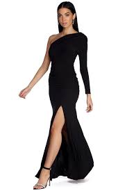 Maia Formal One Shoulder Dress Long Sleeve Cocktail Dress Chic Black Dress Dress Hairstyles