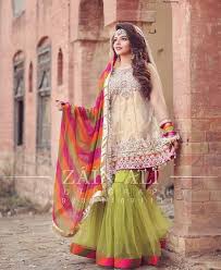 Pakistani Mehndi Dresses For Girls Sharara