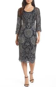 Pisarro Nights Embroidered Scallop Edge Midi Sheath Dress Mesh Cocktail Dress Midi Sheath Dress Dresses