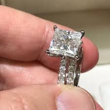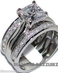 Princess Cut Diamond Engagement Ring 3pc Wedding Band Set Sterling Silv Diamond Rings Engagement Princess Cut Square Diamond Wedding Rings Engagement Ring Cuts