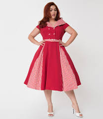 1950s Plus Size Dresses Clothing Plus Size Swing Dresses Miss Candy Floss Plus Size Red White Stripe Rom Vintage Red Dress Plus Size Fashion Vintage Dresses