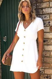 White V Neck Buttons Up Short Sleeve Casual Dress Sun Dress Casual Mini Dress Casual Mini Dress With Sleeves