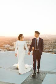 Downtown L A Wedding With Rooftop Views Plain Wedding Dress Wedding Dress Long Sleeve Wedding Dresses