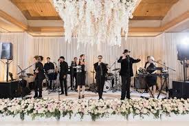 Wedding Reception Live Music Band At Wedding Reception Flower Chandelier Flowers In Front Of Stage Flo Wedding Inside Live Band Wedding Luxury Wedding Venues