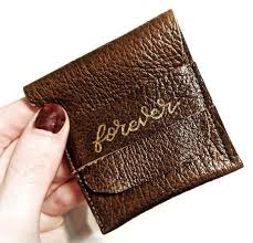 This Handmade Genuine Leather Wedding Or Engagement Ring Pouch Hand Embossed With Forever In Gold Is The Perf Ring Bearer Wedding Brown Rings Leather Wedding